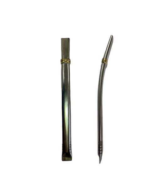 Bombilla de acero inoxidable, plateada con detalle en dorado.
