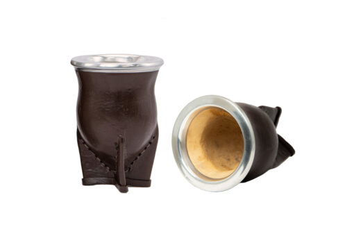 Mate de calabaza, forrado en cuero, con virola de aluminio mas el grabado que mas te guste.