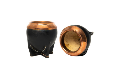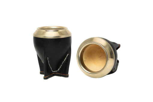 Mate de calabaza, forrado en cuero y con virola de acero.